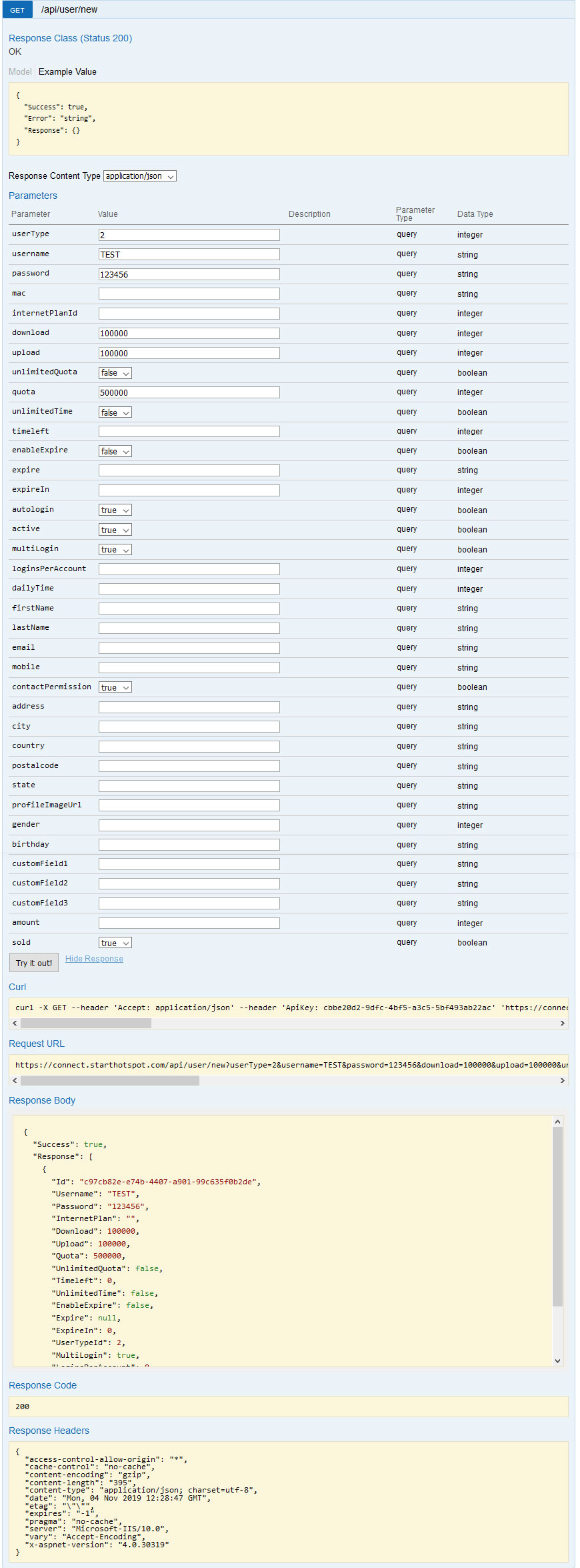 When you have entered the desired values click Try it out! button and the new user will be created.