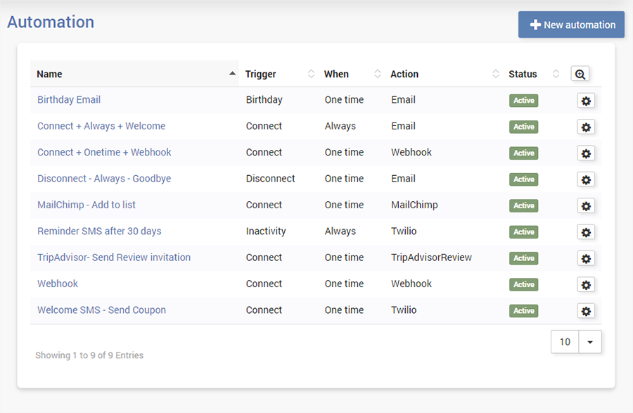 Automation helps you create tasks that are automatically executed when defined events happen, like connect, disconnect, inactivity, birthday.