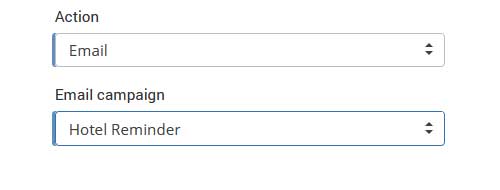If Email is selected as an Action, an additional Email Campaign drop-down menu will appear and you should select some of the previously created Email Campaigns and send it to the users.