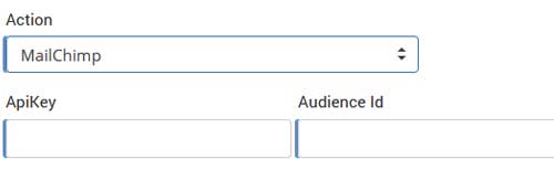 For MailChimp integration, it is required to type ApiKey and Audience ID.