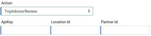 If you select TripAdvisorReview, type ApiKey, Location Id and Partner Id details from your TripAdvisor account.