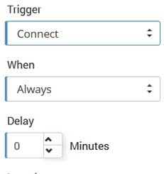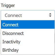 Trigger option specify which user action will be a trigger to send Email and you can select Connect, Disconnect, Inactivity and Birthday.