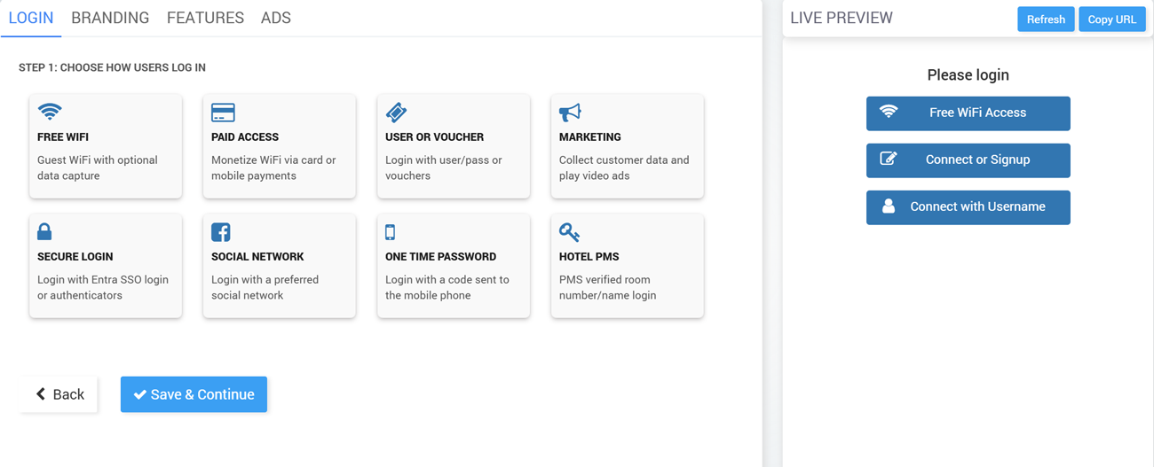 Step 1 Login: Choose how users Login