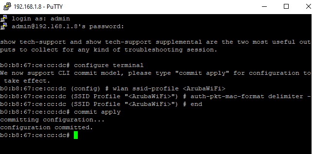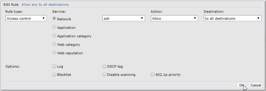 Finally, we need to modify format of the mac addresses. This is possible only through CLI. Add the following rule to be able to connect to CLI SSH.