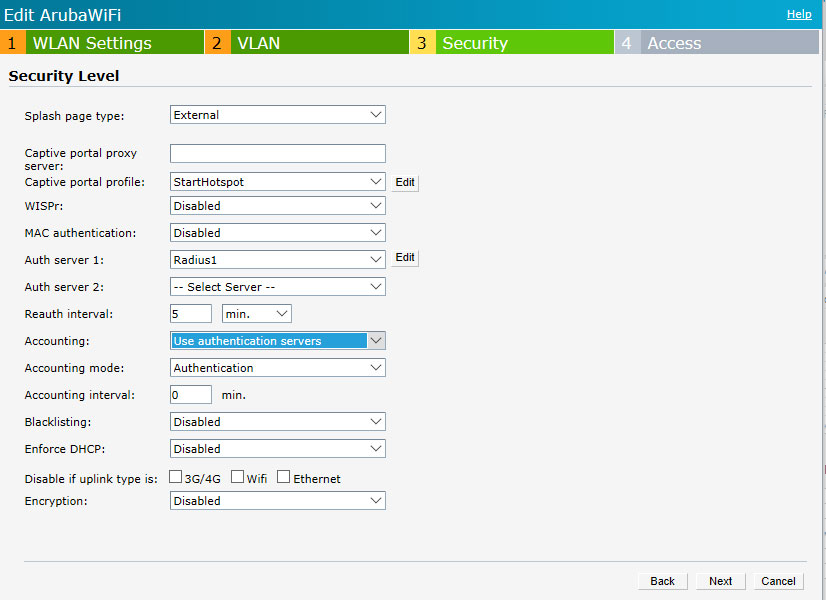 Name – SSID name of your WiFi network (visible to end-user), in our case ArubaWIFI