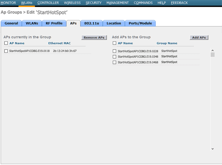 From APs tab are visible APs currently visible in the Group and others which you can add using Add APs to the Group.
