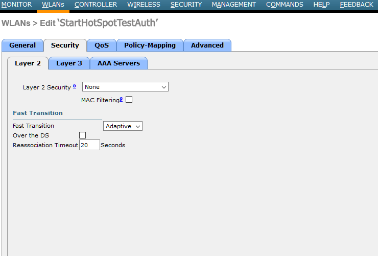 From Security / Layer 2 tab as Layer 2 Security specified None.