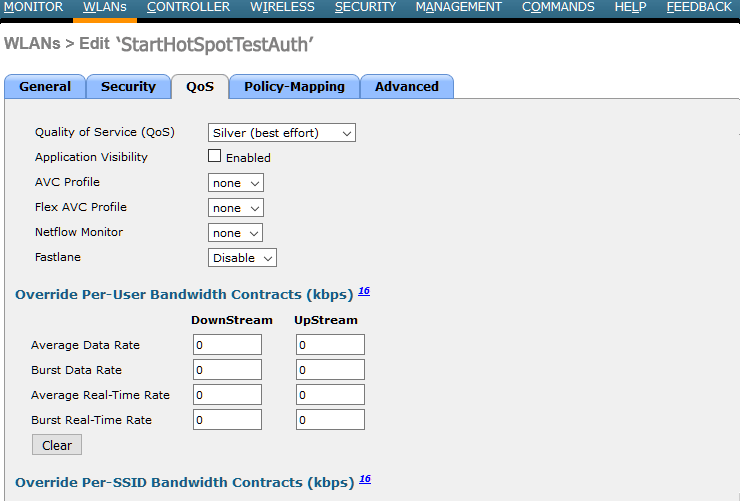 From QoS and Policy-Mapping tab leave default values.
