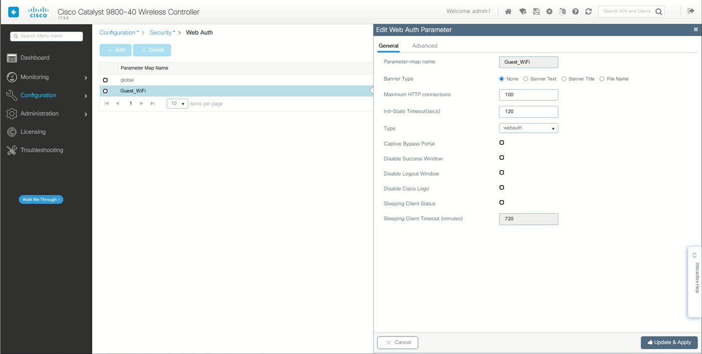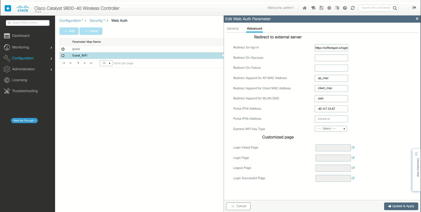 Go to Configuration/ Security / Web Auth page to Add Web Auth Parameter.