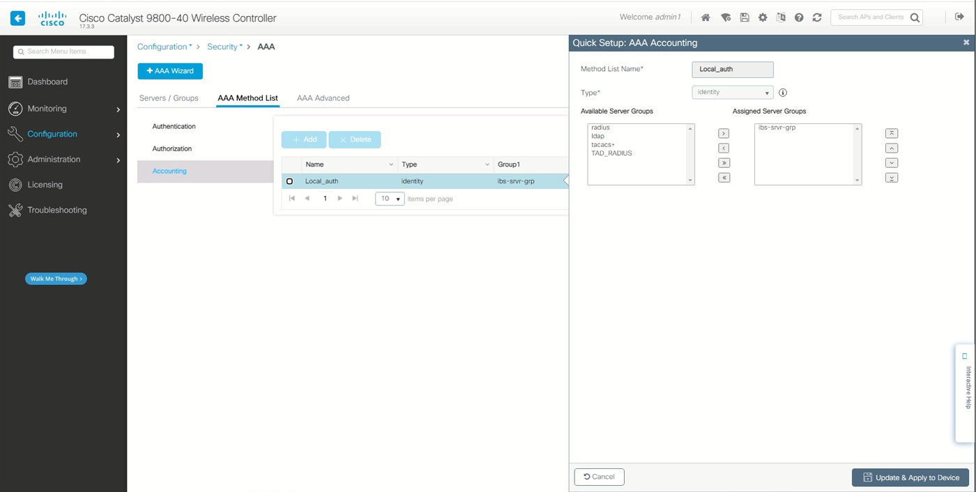 Go to the AAA Method List / Accounting tab and add Local_Auth.
