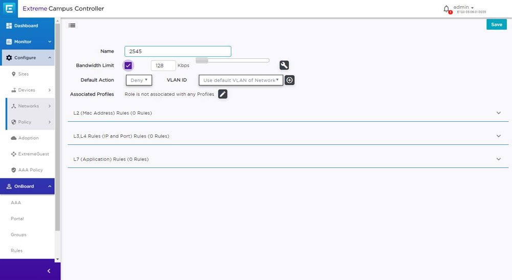 In this example, we will create role 2545 which will be responsible for determining the bandwidth limits based on the appropriate Internet plan.