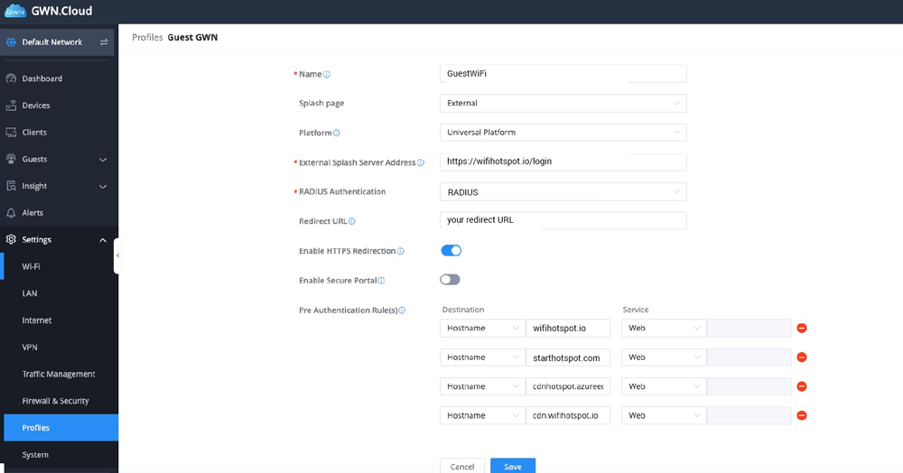 External Splash Server Address: https://wifihotspot.io/login/grandstream