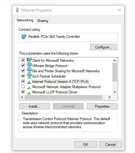 Select Internet Protocol Version 4 (TCP/IP 4) and press the Properties button.