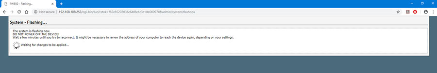 Wait a few minutes until the system flashing procedure is done and connect the cable to the WAN port.