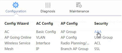 Log in to your Huawei Controller, go to Configuration – Security – AAA page.