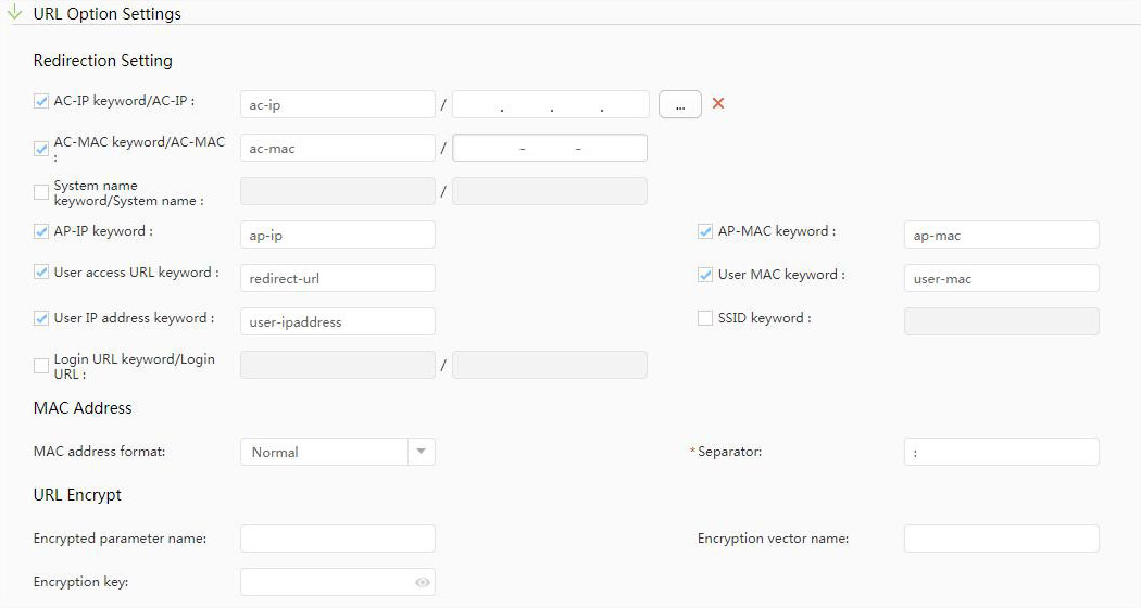In URL Option Settings section configure following: