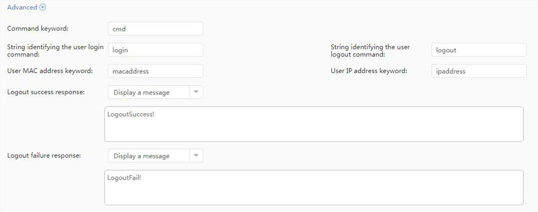 Logout failure response: select Display a message, LogoutFail!