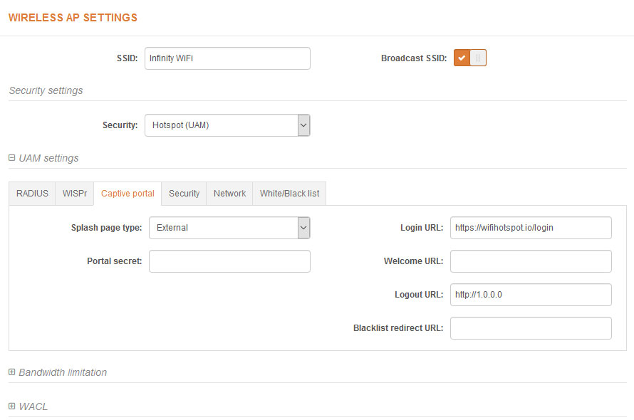 External Login URL: https://wifihotspot.io/login