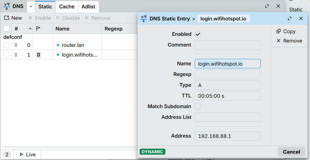 To prevent connection issues with iOS devices go to IP – DNS – Static, open entry and enable it.
