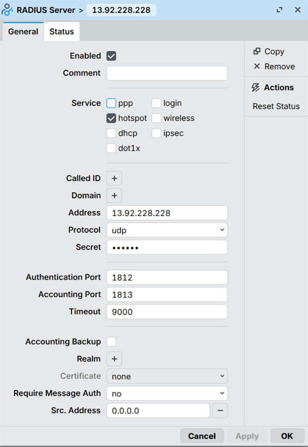 Hotspot Interface: Select bridge-local interface that guests will connect through