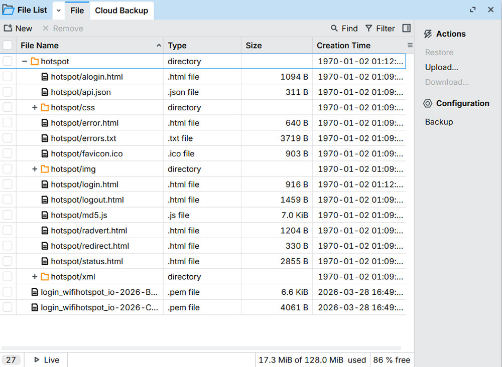 Download login.html file (which is doing the redirection to the splash page) and unzip it. Open the Files section in your Winbox and look for the same filename, it’s usually located in the hotspot folder. Replace this file (drag & drop over the existing one).