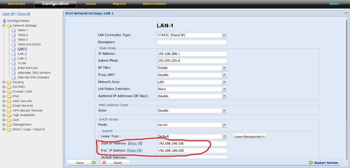 3. If required the LAN IP can be changed as per choice of the customer and subsequently the DHCP pool size can also be increased to meet the DHCP expected ranges.