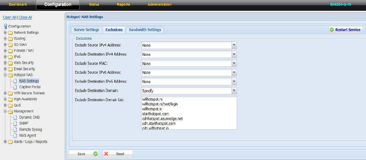 NAS: Exclusions Exclude Source IPV4 address – Values: None | Specify
