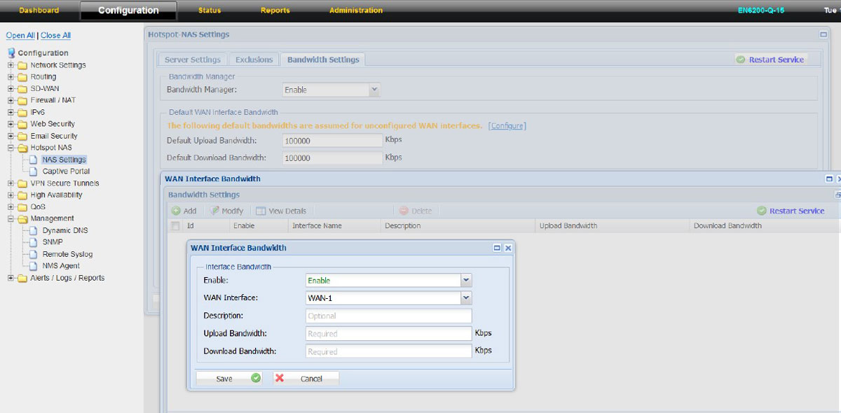 1. WAN Interface Bandwidth settings will open