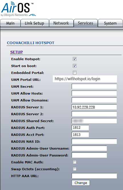 UAM portal URL: https://wifihotspot.io/login