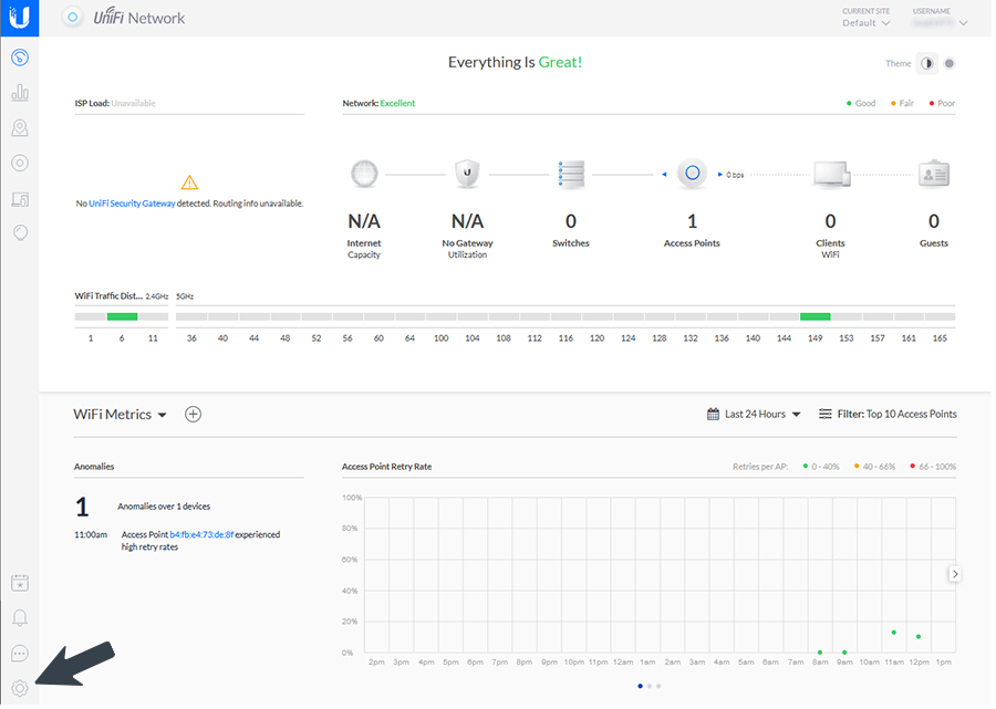 Log in to your UniFi controller and click the Setting icon.