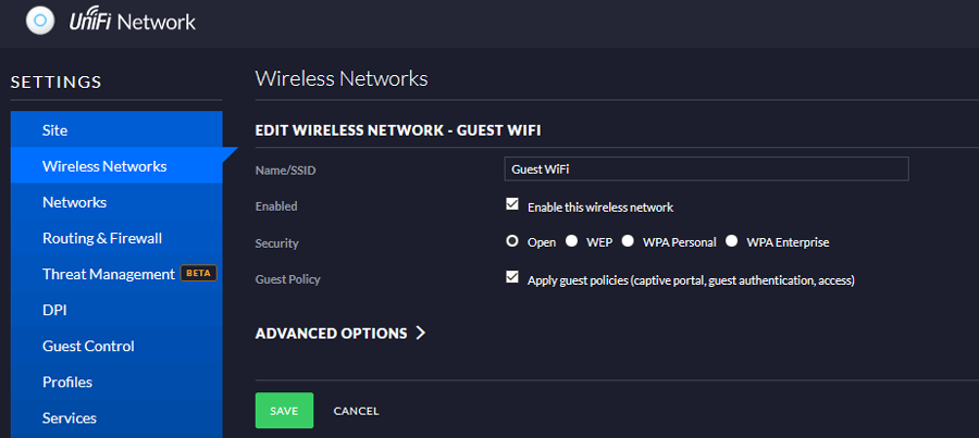 Create a Wireless Network that will be enabled for Guest Access.
