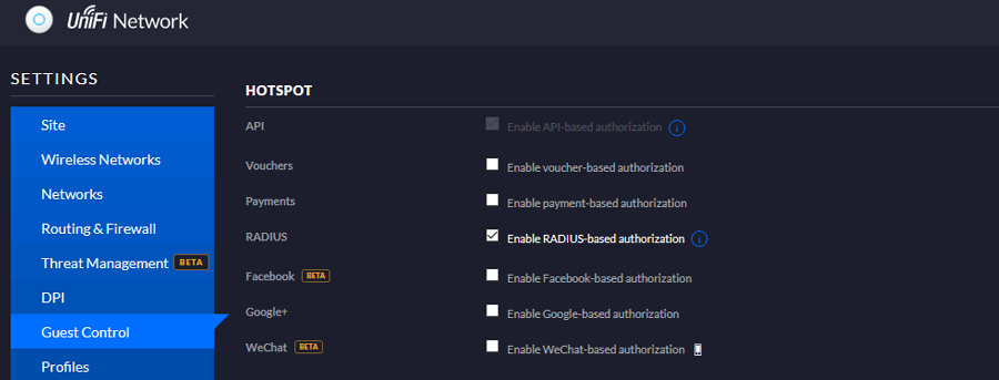 In the Hotspot section enable Radius-based authorization