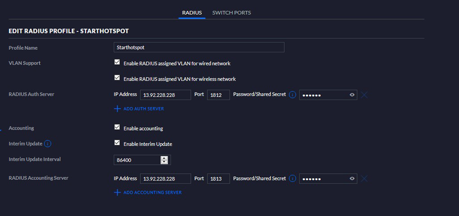 RADIUS Account Server: 13.92.228.228