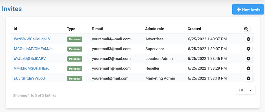 As the main admin, you have the ability to create public or personal invites and invite users to create admin accounts.