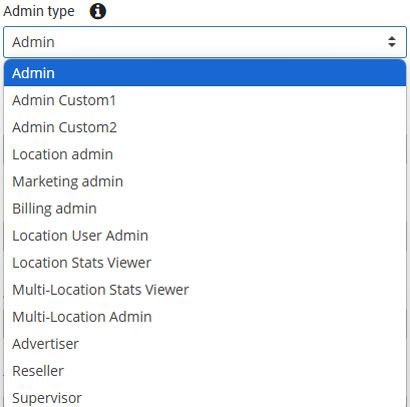 From the Admins panel, you can create system admins and assign them different roles like Admin, Location Admin, Marketing admin, etc.