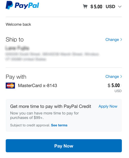 When the user logs in to PayPal, the PayPal Welcome back page is displayed.