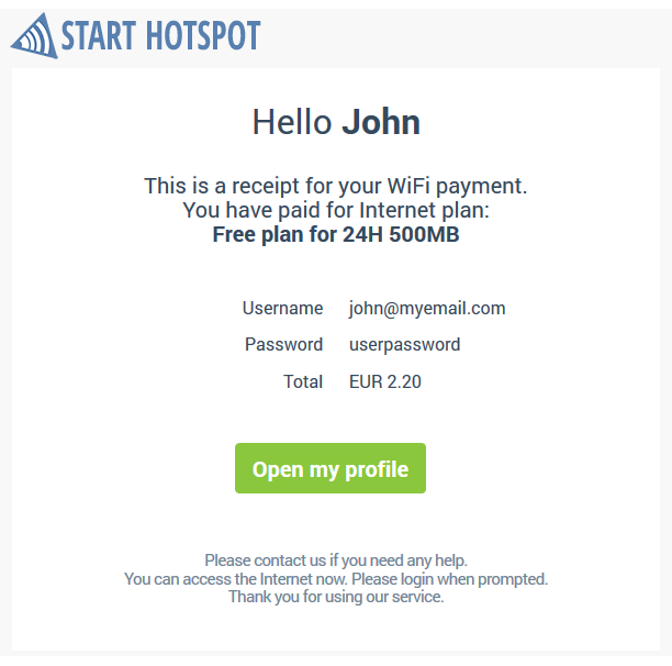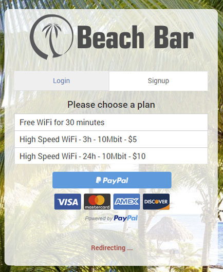 When payment is processed and authorized user will get Redirecting… message on the Splash page and after that, he will be able to access to the Internet.