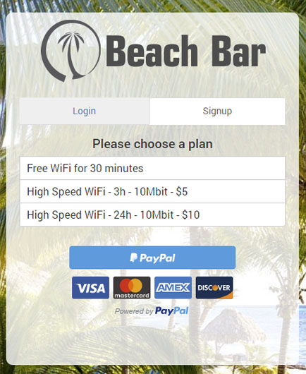 The Paypal checkout experience begins when a user clicks the Paypal button on the Splash page to purchase an Internet plan.