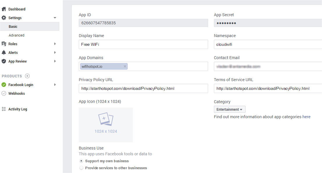 In Website Site URL field enter https://wifihotspot.io/