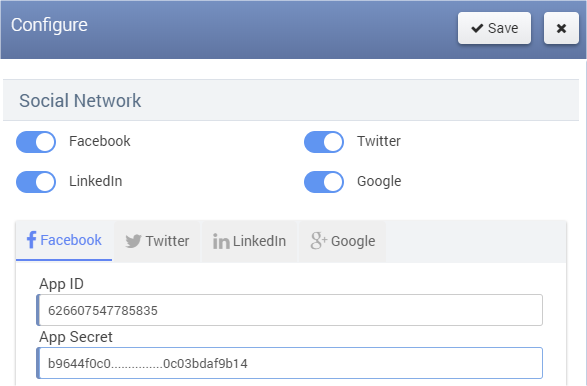 At Dashboard section is available App ID which you will enter in the Social Network Configure tab.