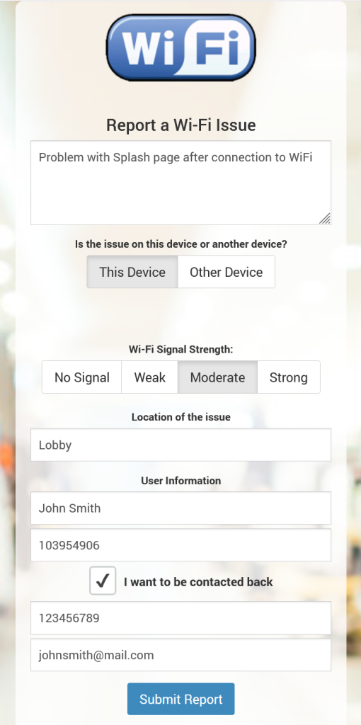 Adding the Help Desk to the Splash page ensures that issues are logged immediately with all necessary details about the user’s device, signal strength, and hotspot location. This enables faster troubleshooting and enhances the overall support experience.