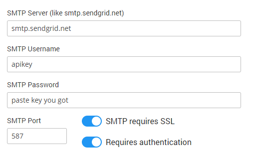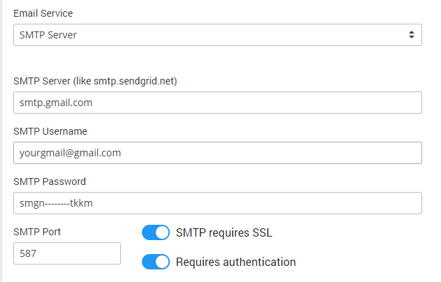 As Email Service you can select SMTP Server, Sendgrid-API, or Amazon-API.