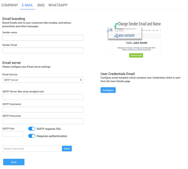 It is required to configure your Email server settings.