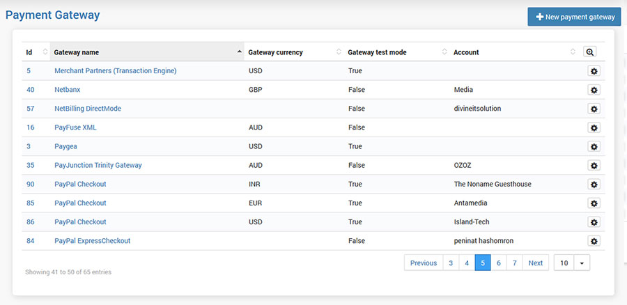 From the Payment Gateway panel, you can see all configured payment gateways.