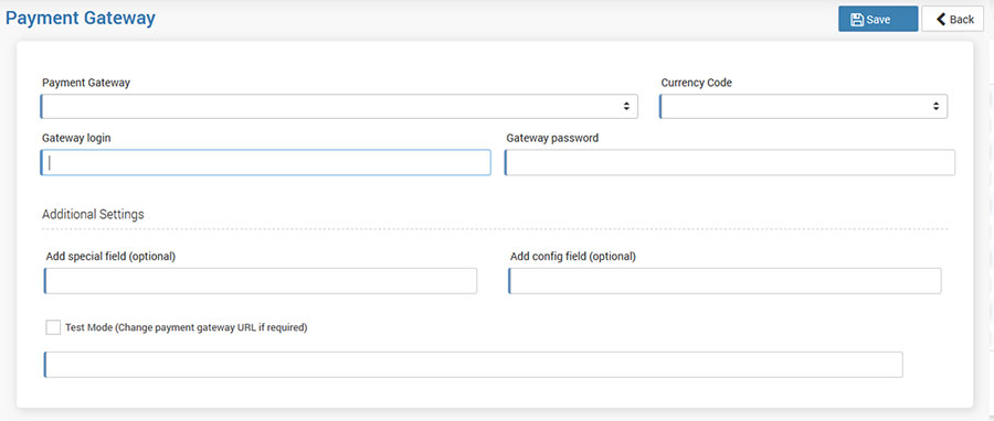 From Payment Gateway list select your payment gateway and set account specific details.