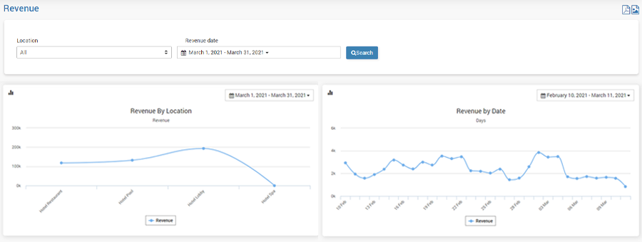 Revenue by date gives revenue details per day based selected time period.