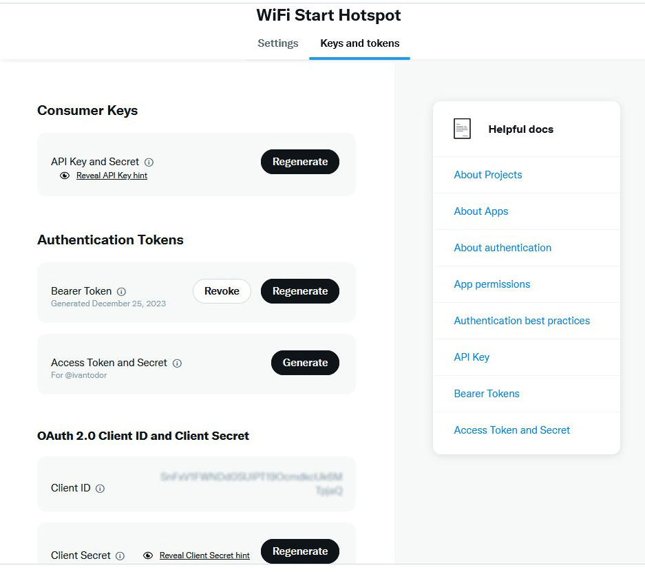 From the OAuth 2.0 Client ID and Client Secret section, copy Client ID, and regenerate and copy Client Secret.