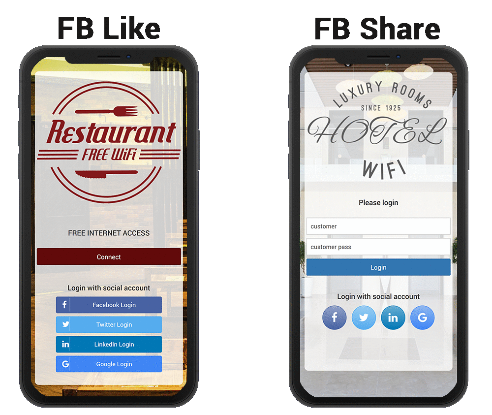 Facebook login is the preferred WiFi access method for many customers.