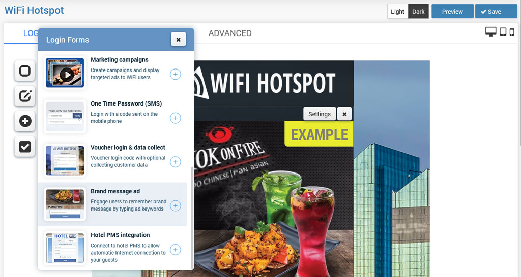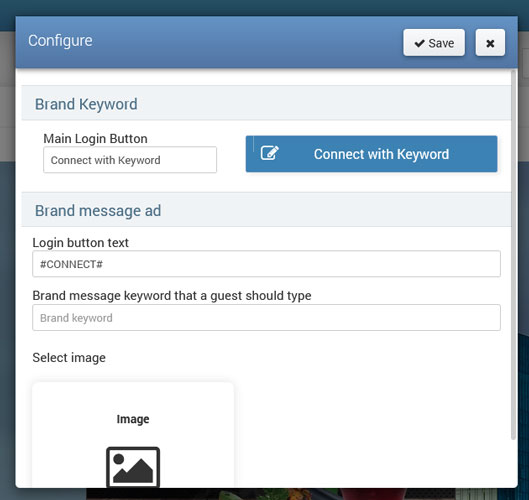 Here is required to select image ad and enter Brand message keyword that a guest should type on the Splash page.