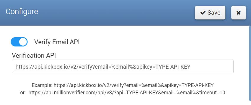 Enable the Verify Email API, enter the Verification API, and save changes.